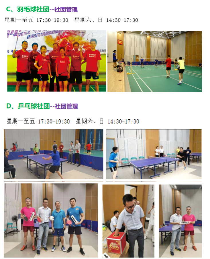 為豐富員工業(yè)余文化生活,創(chuàng)造員工參與活動、相互交流的機(jī)會,增強(qiáng)企業(yè)凝聚力,公司組建了籃球、足球、羽毛球、乒乓球、戶外登山、興趣沙龍及健美塑形共7個文體社團(tuán),配備了相應(yīng)的活動場地和設(shè)施,每年給予每個社團(tuán)10000元經(jīng)費(fèi)支持。員工可根據(jù)個人的文體特長、興趣愛好自行選擇參加社團(tuán)。