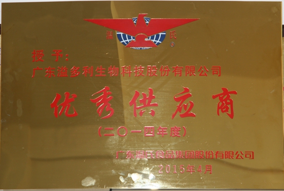 近日,在溫氏集團(tuán)2014年度優(yōu)秀供應(yīng)商大會(huì)上,溢多利榮獲“優(yōu)秀供應(yīng)商”稱號(hào)。